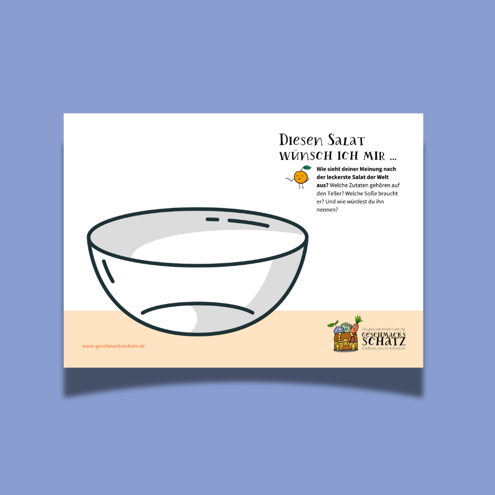 Euer Salat, eure Ideen – malt euren Lieblings-Salat und bereitet ihn dann zu! Wir haben eine tolle Malvorlage für euch vorbereitet: Malt euren Traumsalat und sammelt Ideen für das nächste gemeinsame Kochen mit euren Eltern. Als kleines Extra haben wir euch zwei leckere Salatdressing-Rezepte aufgeschrieben. Denn erst die Soße macht aus einem guten Salat eine Wucht. Probiert es am besten einfach mal aus!