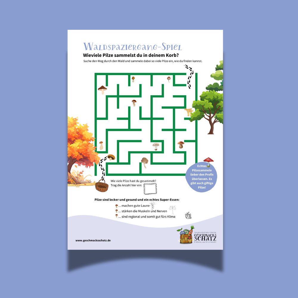 Auf geht es in den Wald, um Pilze zu sammeln. Wie viele Pilze könnt ihr in euren Korb legen und findet ihr auch den Weg wieder heraus aus dem Wald?